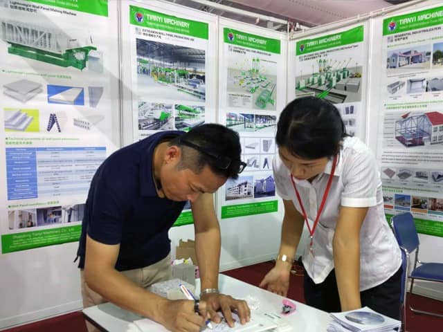 越南是亞洲經(jīng)濟(jì)發(fā)展速度的國(guó)家之一。近年來,越南正加大對(duì)基礎(chǔ)設(shè)施建設(shè)和主要城市居民住宅的改造力度,綠色建筑建材裝備缺口巨大,為適應(yīng)市場(chǎng)需求,天意機(jī)械攜綠色建材設(shè)備參展了此次展會(huì)。展會(huì)期間,外貿(mào)銷售部李經(jīng)理,認(rèn)真對(duì)待每位來訪的客戶,詳細(xì)向其介紹天意機(jī)械專利產(chǎn)品輕質(zhì)墻板生產(chǎn)線,復(fù)合墻板生產(chǎn)線,保溫裝飾一體化板生產(chǎn)線等產(chǎn)品的優(yōu)勢(shì),以及設(shè)備在東南亞地區(qū)建筑建材市場(chǎng)的影響,展會(huì)現(xiàn)場(chǎng)就有多數(shù)客戶,初步簽訂了輕質(zhì)墻板生產(chǎn)線、復(fù)合墻板生產(chǎn)線加工生產(chǎn)訂單。